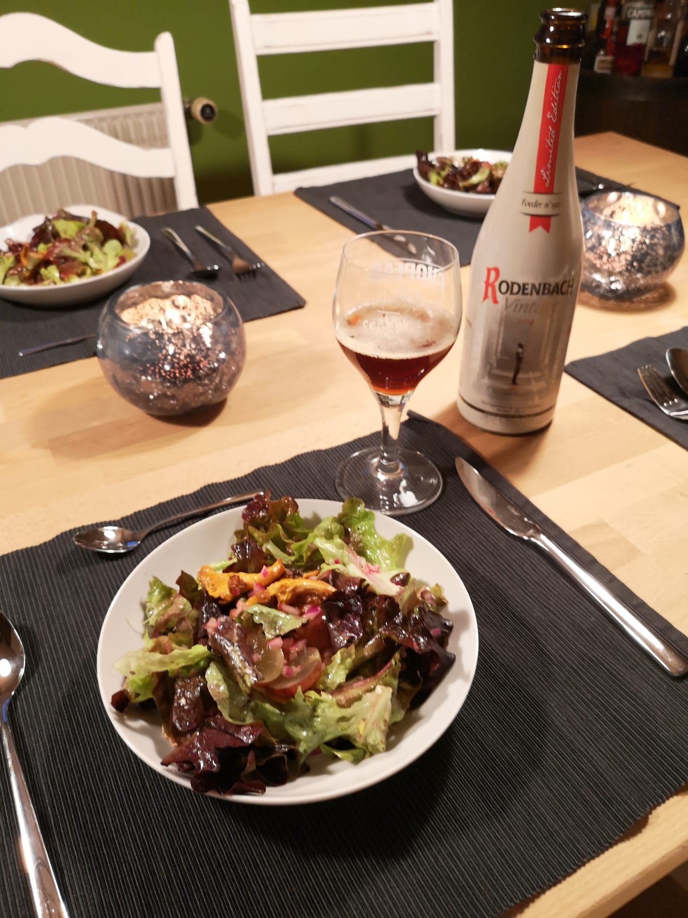 Schalotte hacken. Mit Essig, Öl und Zitronensaft verrühren. Mit Salz und Pfeffer abschmecken. Pilze rüsten und je nach Grösse halbieren. Butter in einer Bratpfanne erhitzen. Pilze dazugeben und bei mittlerer Hitze ca. 2 Minuten braten. Mit Salz und Pfeffer abschmecken.
